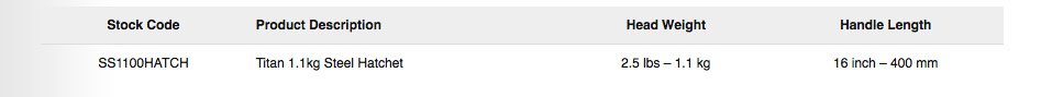 • The superior quality of the rubberized handle provides excellent grip in wet and dry conditions which makes the TITAN hatchet more versatile and safer to use.
